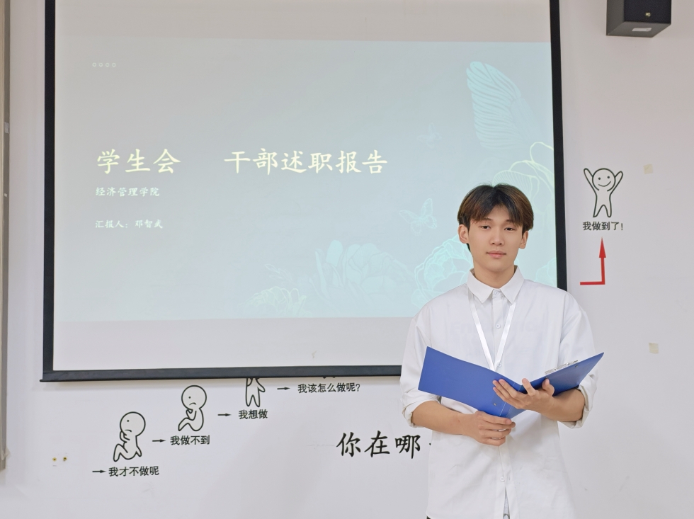 为总结经济管理学院团委学生会一学年来的工作成果和加强组织建设,激励团学成员开拓进取、锐意创新,坚持“全心全意为同学服务”的宗旨,2025年5月19日在1-301室开展2024-2025学年团委学生会工作人员述职大会。参加本次会议的有经济管理学院党总支副书记马俊、副院长助理林达源、学生党支部副书记陈有娣、团委书记廖勇、团委副书记陈学莹、辅导员代表潘杰朝、郭帅君、廖靖雯、团委学生会全体干部及学生代表。