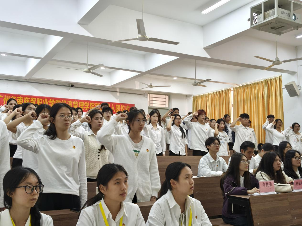 为加强共青团队伍建设,增强新团员的光荣感与责任感,提升我校十大育人体系之组织育人成效,经济管理学院团委于2025年12月3日中午在教学楼1-103室举行2025-2026学年第一学期新团员入团仪式。出席本次仪式的有经济管理学院党总支副书记申海波,院团委书记陈学莹、副书记郭寒微,辅导员代表关富匀、许育珠、莫林金菊、戴静文、林依楠,院团委相关部门成员以及72名新发展团员,本次入团仪式由院团委公关礼仪部郑俊雅同学主持。