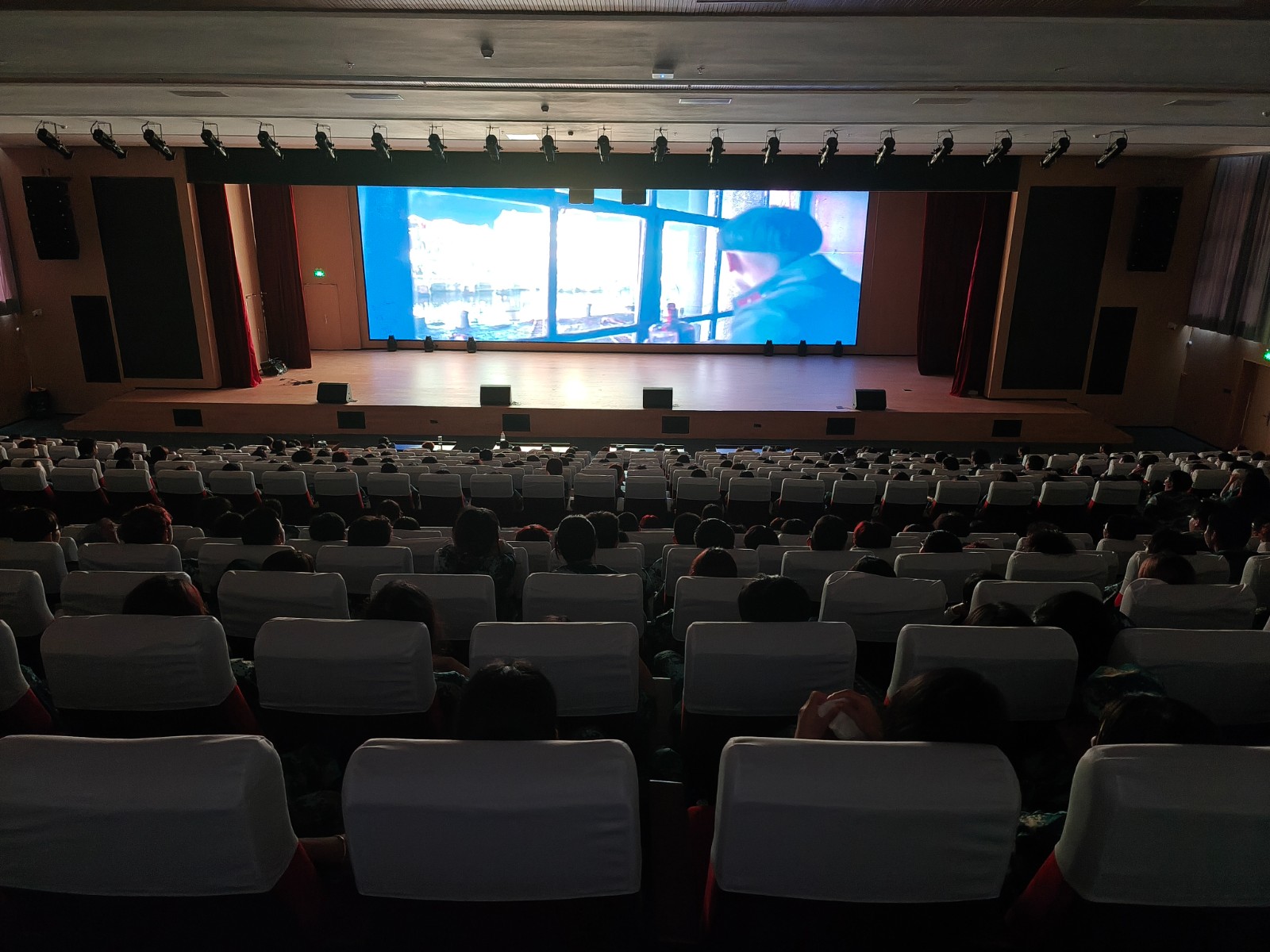 报告厅内,唯有影片中的枪炮声与战士们的呐喊回荡。当“八百壮士”在四行仓库筑起血肉长城,当年轻士兵绑着炸药纵身跃下的瞬间,全场新生屏息凝神,眼中满是震撼与崇敬。先辈们以生命赴使命的壮举,跨越八十余载时光,在新一代青年心中种下了敬畏与自强的种子。