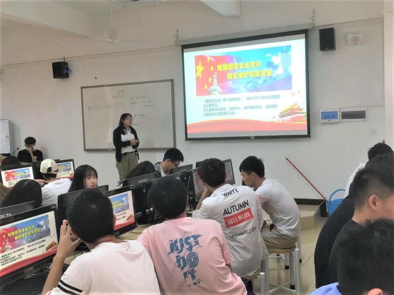 4月17日15:30,18级电子商务6班在1教201课室举行“国家安全教育日”主题班会。班会由班长黄晓汇主持。