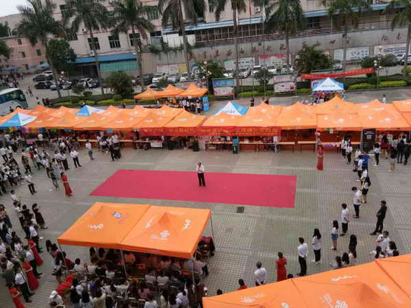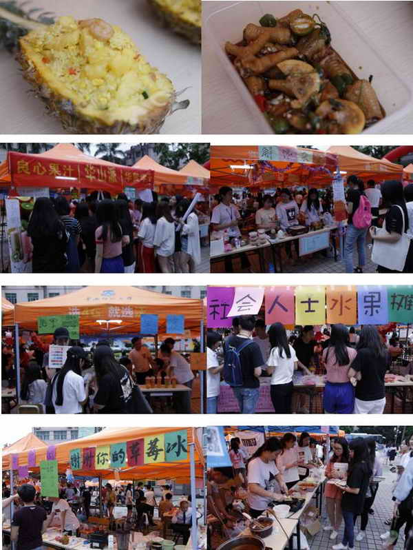 本次工商模拟实践周将持续五天的时间,在此次工商模拟周现场,各摊位色彩斑斓、商品琳琅满目,比如服装、美食饮品、美容美甲、义卖、公益宣传等等。 现场更是络绎不绝,处处充满欢声笑语、掌声雷动;每个摊主饱诚守真地招揽生意,想出各种各样的宣传方式,比如播放音乐、打折促销、集赞等方式,吸引了许多路过的同学以及老师到摊位光顾。每一天的实践活动都会持续到晚上九点,同学们可在课余时间积极的参与到我们的实践当中来,将理论知识运用到实践当中去。