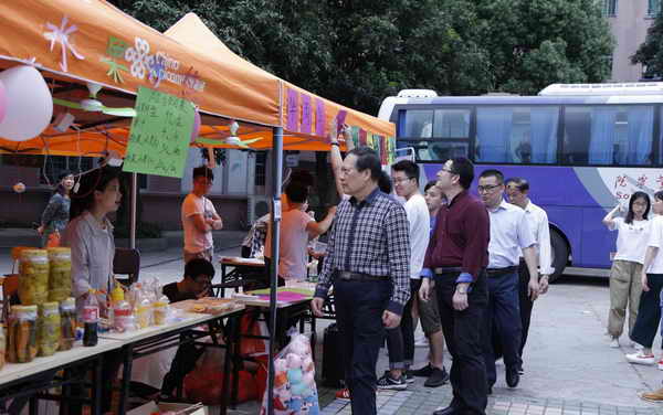 表演完毕,蔡光荣主任宣布第十三届工商模拟周正式开幕,举行剪彩仪式。开幕式结束后学院领导及嘉宾进入实践现场参观指导。
