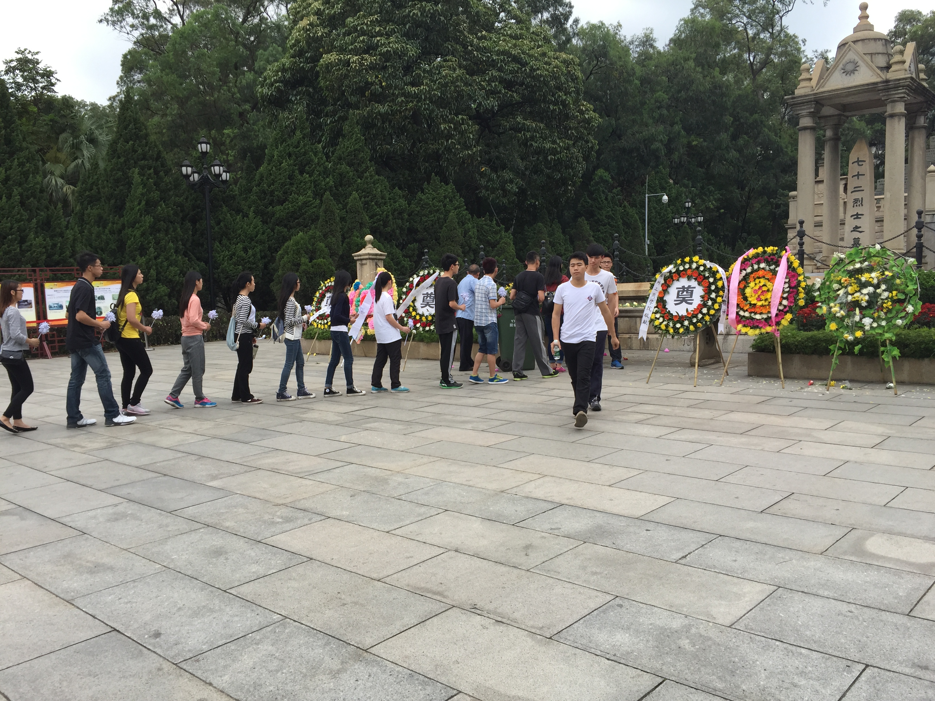在清明节到来之际,为悼念革命烈士,缅怀革命先烈的丰功伟绩, 2015年4月2日下午,在我院行政第二党支部的带领下,各系团总支书记、院团委、学生会及各系学生代表共45人,赴广州黄花岗七十二烈士墓开展“祭先烈 寄希望”清明扫墓活动。
