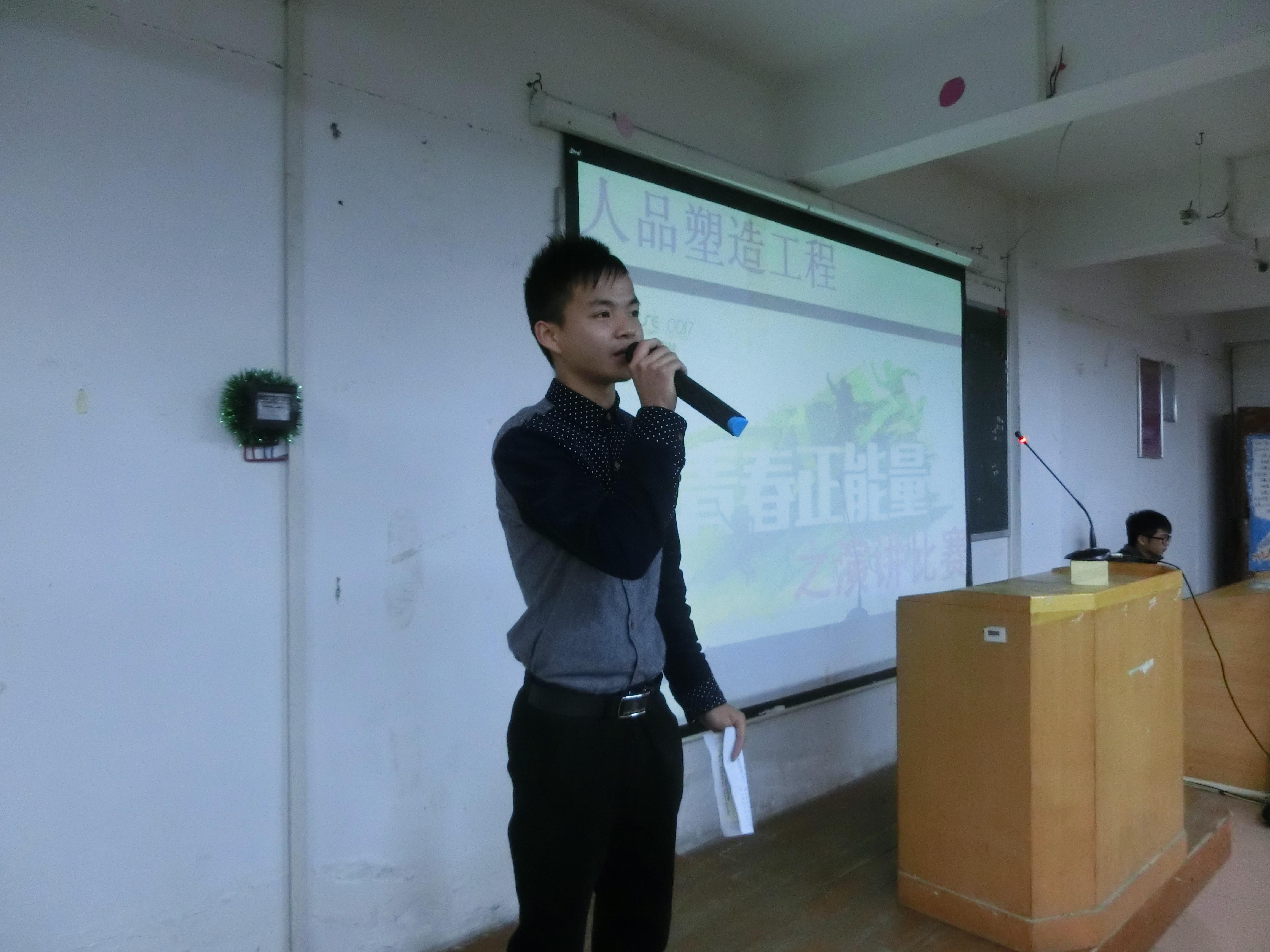为了提高同学们的演讲能力,给予大家一个展现自我的平台。2014年12月8日下午5点贸易经济系团总支学生会在本校中心楼405教室举办了一场以“青春正能量”为主题的演讲比赛。出席本次比赛的评委和嘉宾分别是:团总支书记练倩娴、余信银老师、贸易经济系主席团、商务管理系主席团及学习部部长、应用外语系主席团及学习部部长、信息工程系主席团及学习部部长、财务会计系主席团及学习部部长。