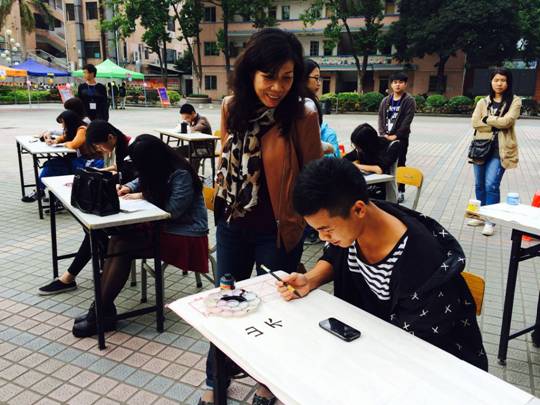 为了传承我国悠久的文化精髓,加深同学们对我国书法、绘画艺术的了解,让广大书法、绘画兴趣爱好者互相交流、学习、进步。贸易经济系团总支学生会于2014年11月13日14:20分在教学楼前举办了以“用艺术张扬个性,用书法渲染人生”为主题的现场书画大赛。出席本次活动的嘉宾有党委宋翎书记,学生处陈文伟处长,付丽萍副主任,谢嘉老师,团总支书记练倩娴老师以及各系主席团。