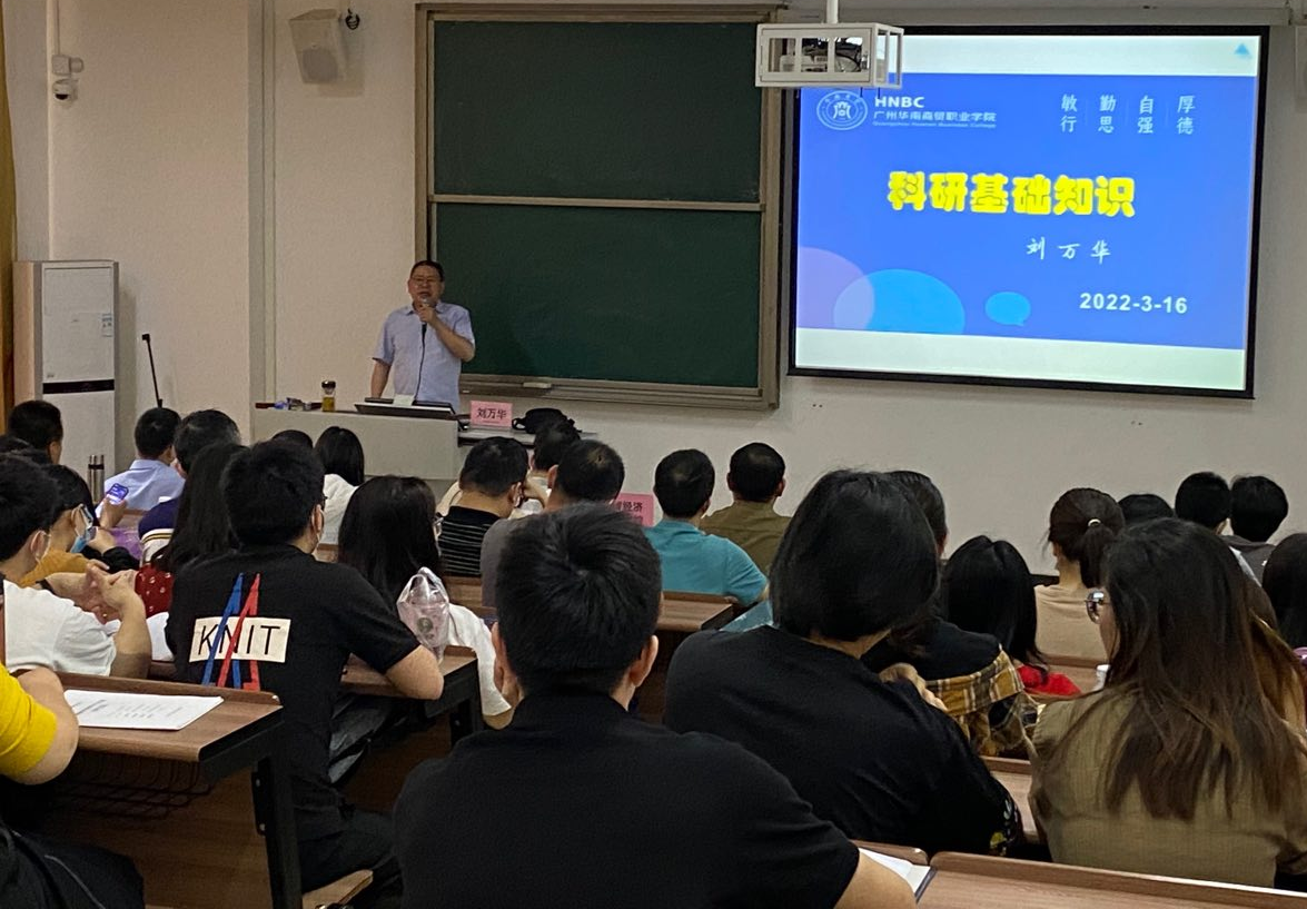 为了提升青年教师科研能力,拓宽科研思路,掌握科研课题申报规范与要求,提升教师队伍科研课题申报能力,促进科研工作新突破,3月16日,数智经济贸易学院在教学楼1-103课室开展学术交流讲座。我院全体教职工以及云智设计传媒学院全体教职工共计80余人参加。本次讲座由我院院长刘万华教授主讲。