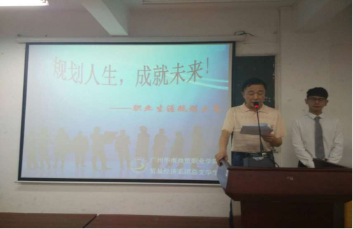 为了贯彻落实学院2016年就业创业工作会议精神,进一步强化大学生职业规划意识,推动就业创业指导工作深入开展,我院举办“第六届大学生职业规划大赛”,半决赛由各系组织。贸经系半决赛由我系学生会网编部和纪律部共同承办,于2016年5月24日下午6点10分在我院中心楼405教室举行。到场的嘉宾有招生就业办李期华主任、贸易经济系黄友生副主任、人文与外语系团总支钟晓燕书记、贸易经济系团总支崔玥书记、贸易经济系辅导员罗欢老师和王浩老师、招生就业办吕伟玲老师,以及企业代表国家高级美容师歪歪小窝创始人余信金小姐和广州耀玩网络科技公司创始人徐洪锋先生。本场比赛由我系党总支马俊书记、专业教师黄姣、王少瑜老师、辅导员余信银、陈玉秀老师担任评委。