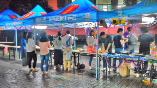 第一类,各式小吃。古人有云:“民以食为天”。每个人基本上不会抗拒美食的到来。所以在工商模拟周上,各类小吃基本上是最热销的。