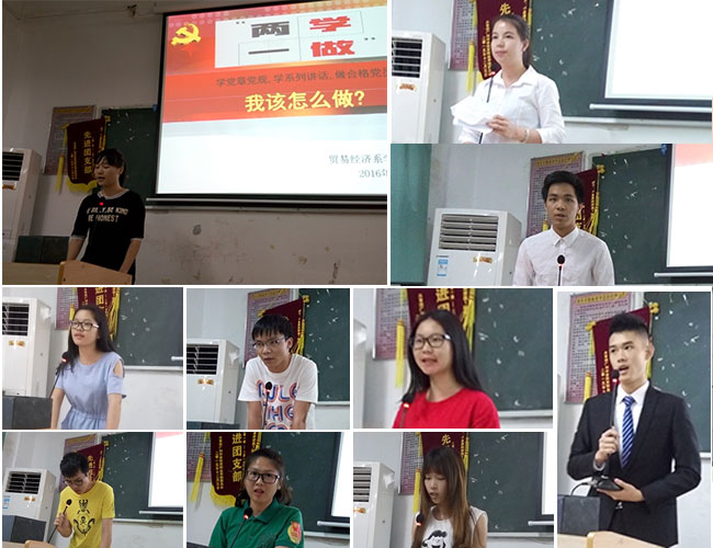 为深入学习贯彻中央和省委关于在全体党员中开展“学党章党规、学系列讲话,做合格党员”(两学一做)学习教育活动有关精神,推动全面从严治党向基层延伸,贸易经济系开展了为期一个月的系列学习教育活动,4月28日完成学习安排的最后一项内容:“两学一做,我该怎么做?”专题讨论交流。系列学习活动由系党总支书记马俊统筹,学生党支部书记罗欢、组织委员崔玥、宣传委员陈玉秀组织,共计安排了3次授课和1次讨论交流,面向的是全体在校党员、15级积极分子、14级部分积极分子。