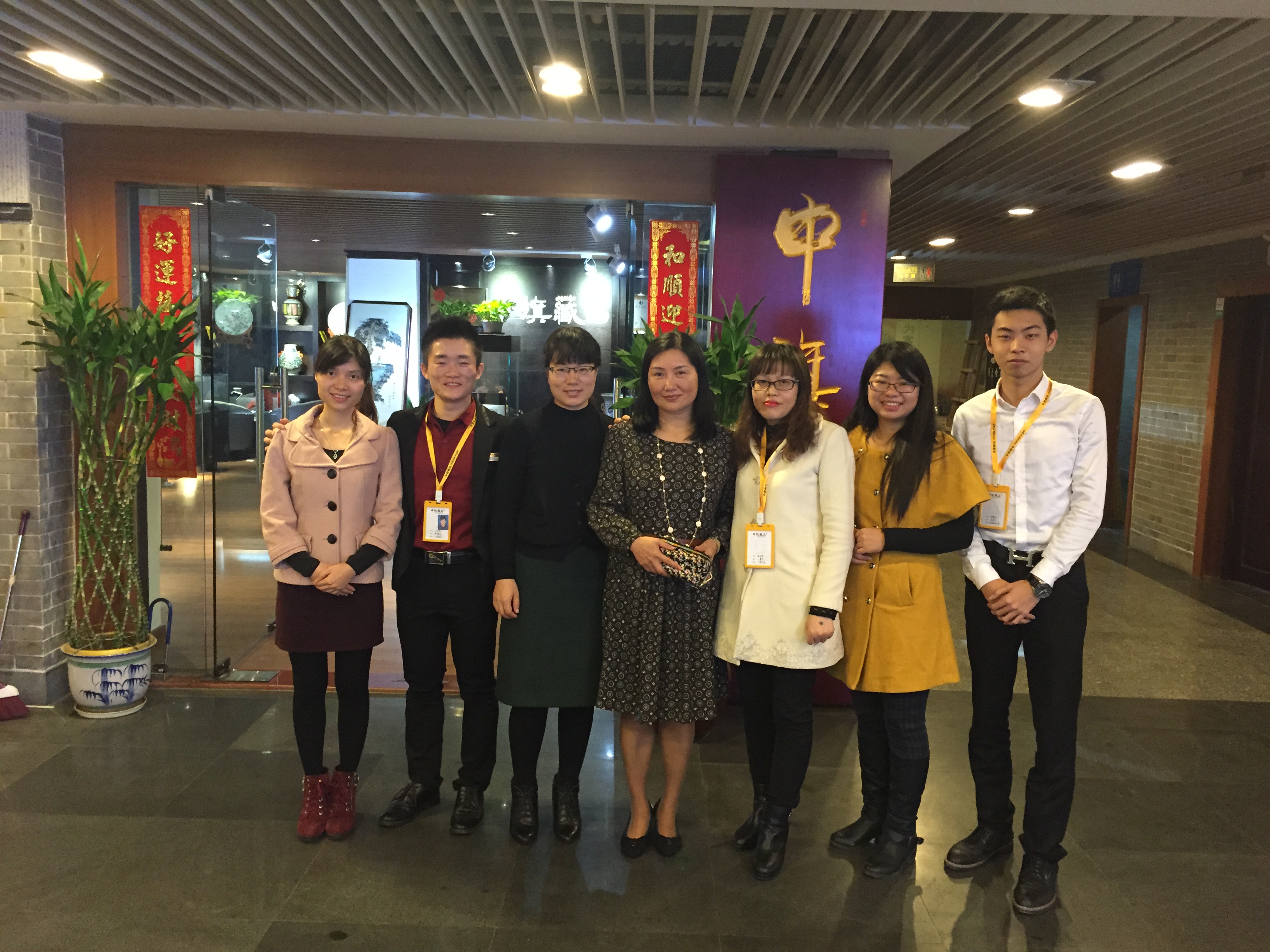 2015年12月23日,广州华南商贸职业学院郑雪梅副院长应贸易经济系马俊书记邀请,携马书记、余信银辅导员、陈玉秀辅导员走访了部分2016届毕业生顶岗实习单位,包括13市营4班王洪放和13商英梁锦健所在的中旗藏品、13电商2班陈秋菊所在的广州市冠维视讯有限公司、13金融1班韩颖所在的广州满鼎企业有限公司、13市营2班陈佳欣、江悦所在的广州汉藏文化发展有限公司,共计4家企业,6名顶岗实习学生,受到了企业和学生的一致欢迎。