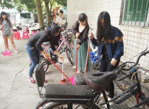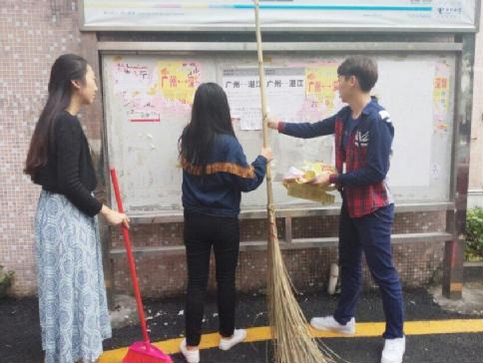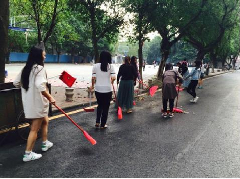 我系主要负责的区域有10号楼前、11号楼前及中间过道、一号饭堂前羽毛球场。这些地方是同学们每天经过或聚集的地方,所以边边角角和大路上总有一些垃圾。老师们在确切落实好每一位同学的清洁任务后,便与同学们一起加入到整理校园的活动中。带上笤帚,簸箕,还有塑料袋,扫的扫,拣的拣,清除校园内的小广告,花坛边的杂草,打扫卫生死角。彻底清扫,保持校园整洁干净。