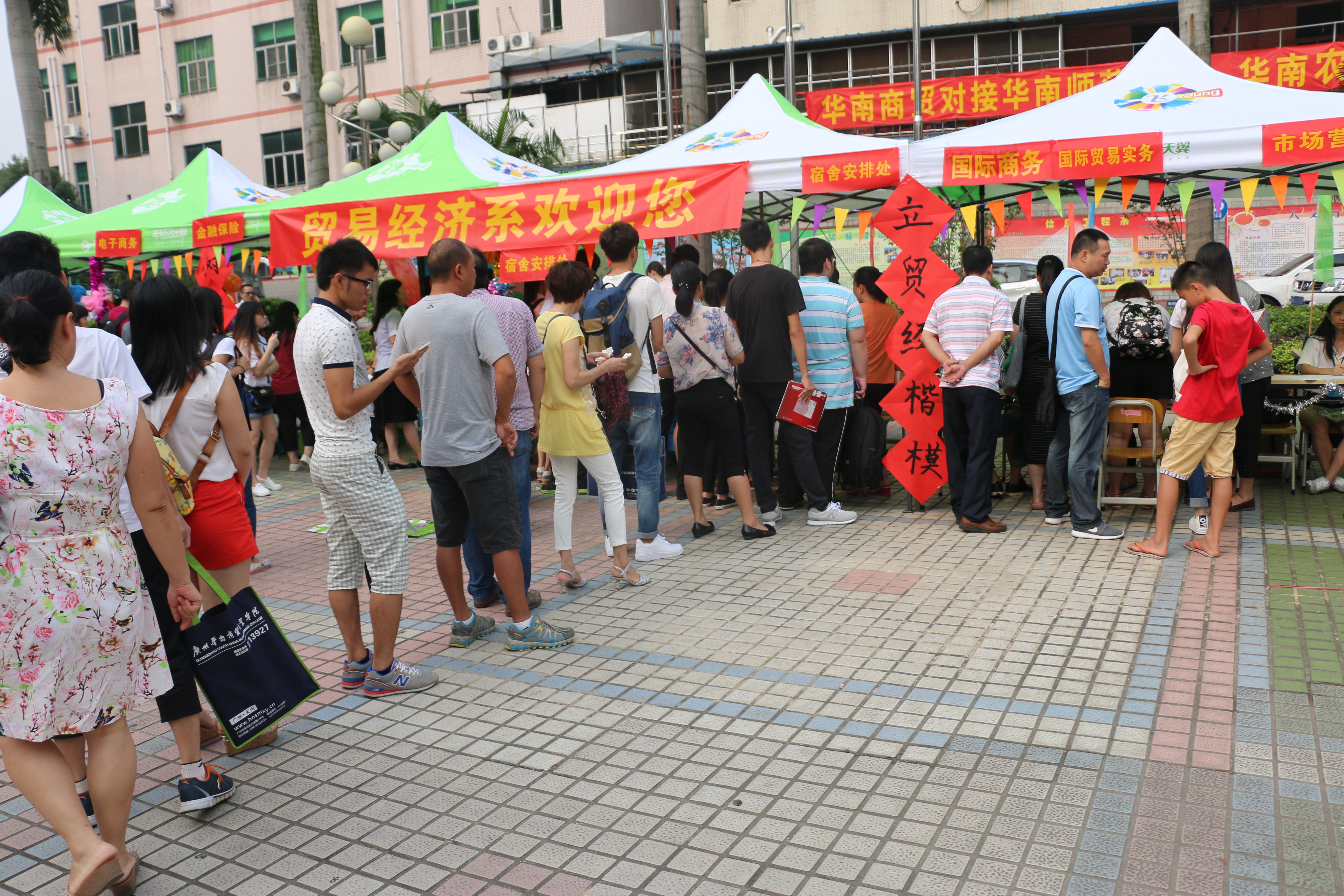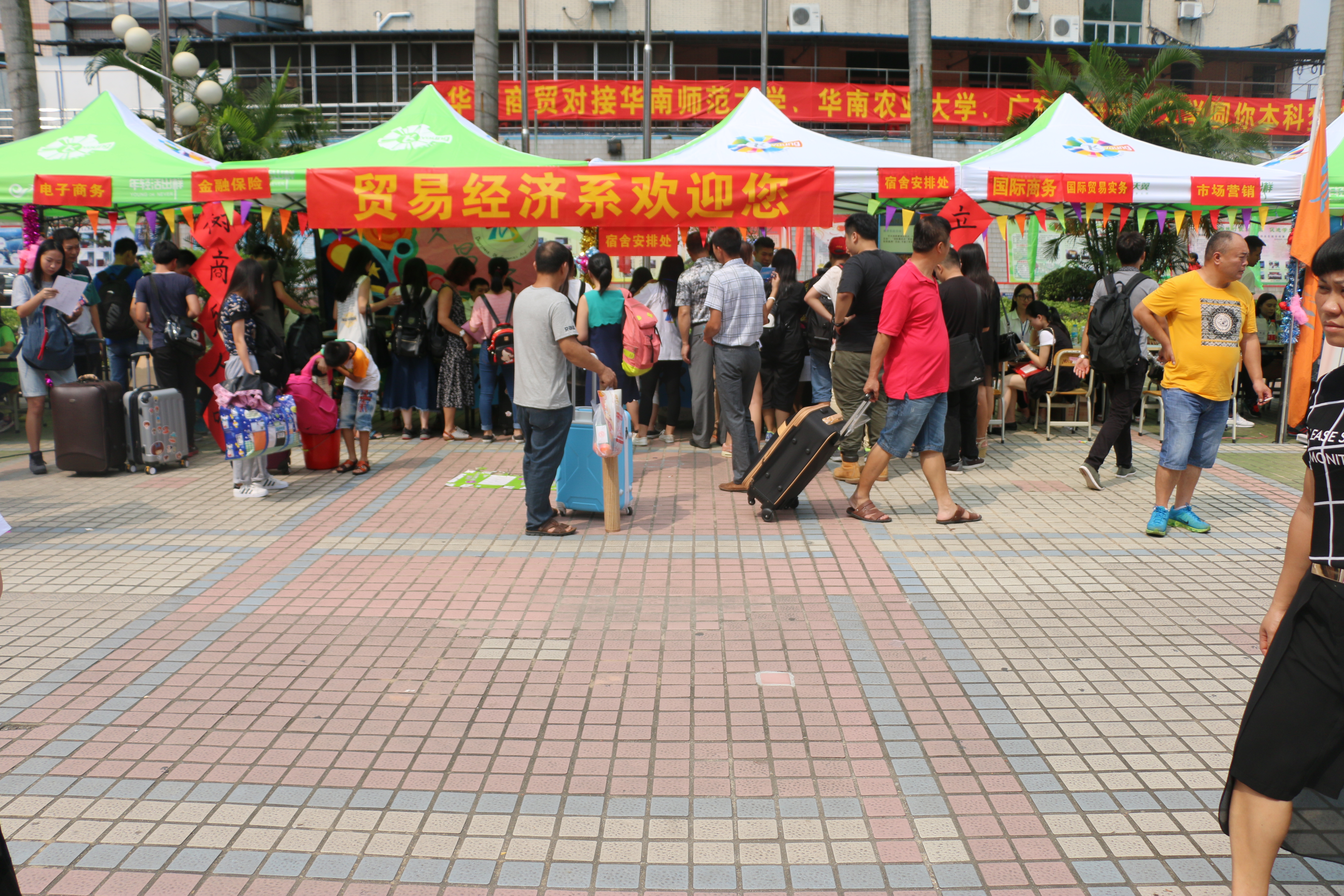为做好迎新工作,学生会成员们组成了一个迎新队伍,帮助新生们完成注册,领取生活用品,以及入住宿舍等工作。成员们满腔热情,为了让新生尽快地熟悉新环境,使他们更快地融入学校的生活,成员们向新生们简单地介绍了学校的楼层分布、生活注意点,针对他们未来的生活提出自己切身的建议。虽然时间已进入九月,但是广州的天气依然很炎热。不过,尽管成员们都累得汗流浃背,但他们并没有懈怠自己的工作,他们热心地欢迎每一位新生的到来,帮家长学生们搬运行李,让刚踏入大学校园的新生们感受到了特别的温暖。