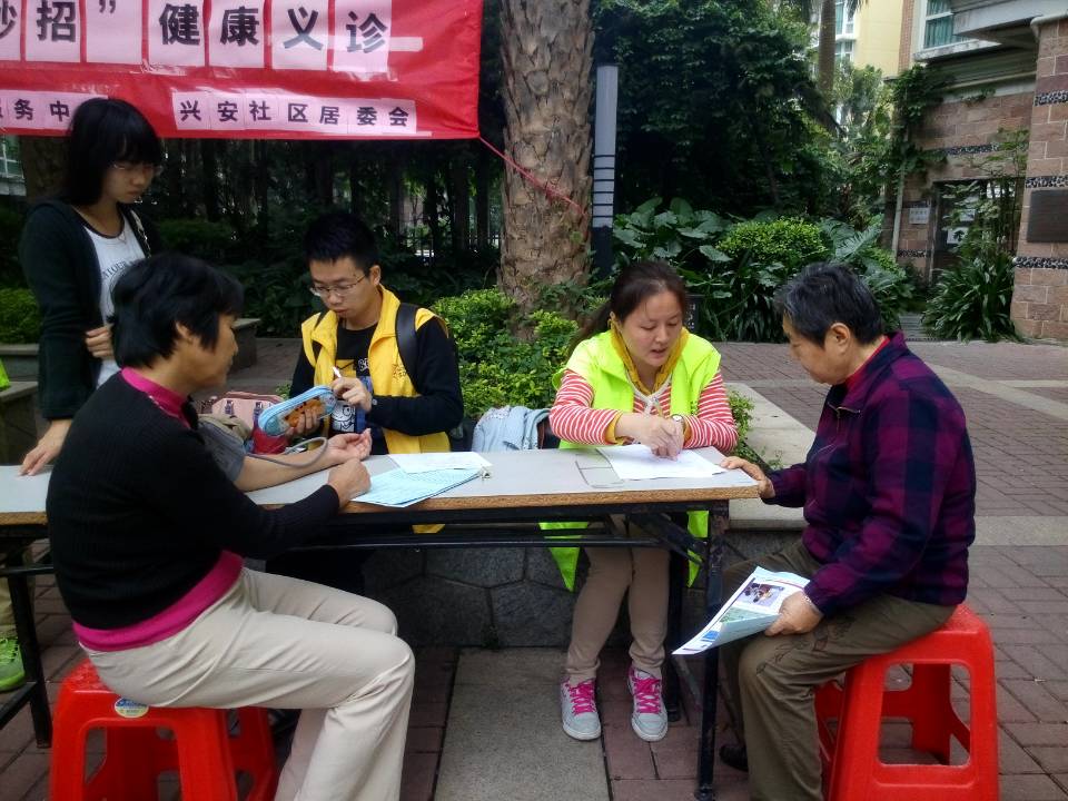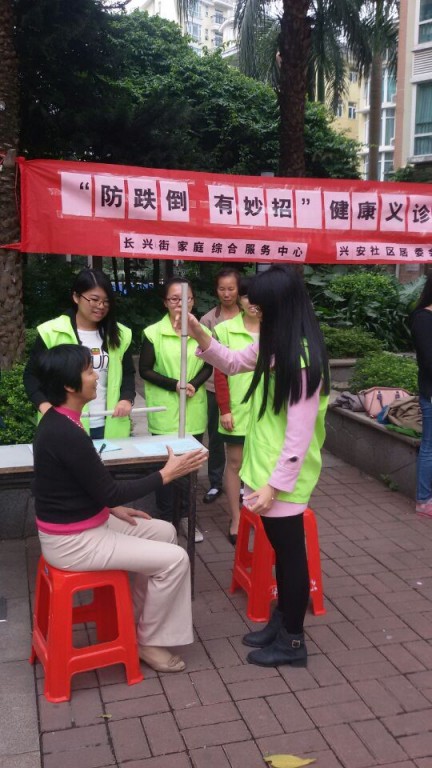 抵达岑村后,各小组按照工作安排迅速摆设好所需仪器,以便更快捷的服务长者。首先,由我们对长者的个人资料进行基本登记,包括姓名、联系方式、体重、血压等,并对其血压过低或过高的长者给予温馨提示。紧接着,对长者的反应力、平衡力和肌力进行了测试,在测试的同时,我们还传授了防摔知识于长者,不仅让老人增强自身的警觉性,还在日常生活中提高了对预防跌倒的重视程度。最后,还温馨提醒各位老人一旦跌倒,应及时就医,切不可麻痹大意。