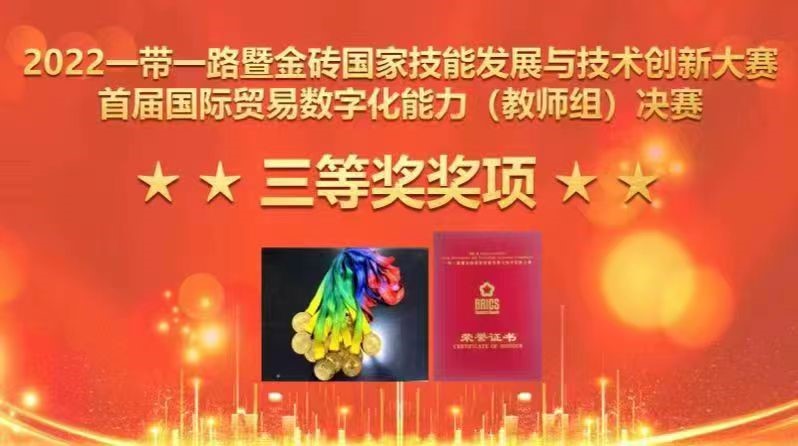 专业教师在“2022一带一路暨金砖国家技能发展与技术创新大赛”中斩获国际贸易数字化(教师组)三等奖。