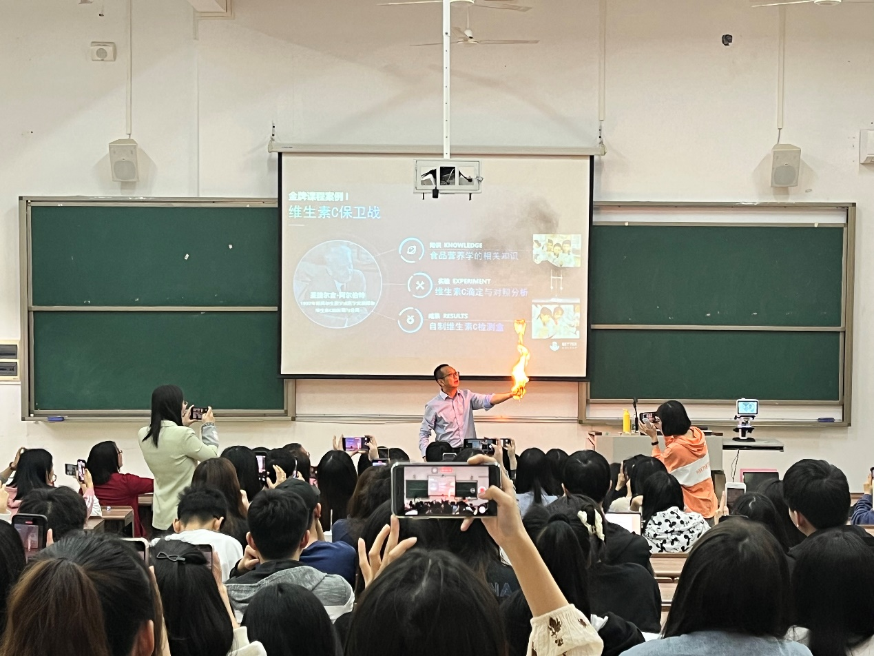 紧接着吴盟总经理分享个人职业生涯,对倍特是谁、倍特生命教育的发展历程、倍特为什么会做中小学生命科学教育、倍特做了什么等做了详细介绍。目前,倍特正在快速的发展,业务包括中小学生命科学研学课程、中小学430课后特色课堂等,需要培养大量课程研发工程师、课程前端销售工程师、电子商务运营工程师、新媒体营销师、课程执行老师等。我校市场营销、电子商务、大数据与会计、中药学、研学旅行管理与服务、旅游管理、婴幼儿托育服务与管理等专业正好匹配企业的人才需求。企业导师会给订单班同学上课,同学们经过专业化训练,走进各地的幼儿园、中小学、开展中小学科普教育、研学旅行等。为了使学生深入了解什么是生命科学教育,吴总在现场展示了科学实验“掌上火焰”。吴总的精彩讲授很受大家欢迎,现场互动气氛很浓厚,座无虚席,让同学们获益良多。
