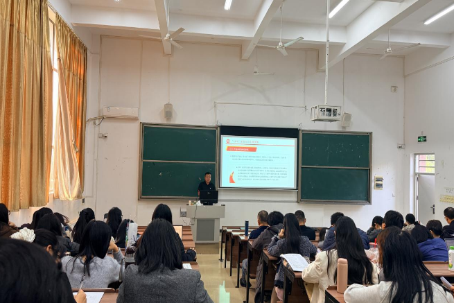 为深刻领会党的二十届四中全会核心要义,准确把握“十五五”时期发展蓝图,12月3日下午,经济管理学院党总支在2-101教室进行专题党课学习。学院党总支副书记申海波围绕“党的四中全会内涵是什么?‘十四五’我们交出了怎样的答卷?二十届四中全会究竟擘画了怎样的未来蓝图?”三个核心问题,进行了系统深入的宣讲。